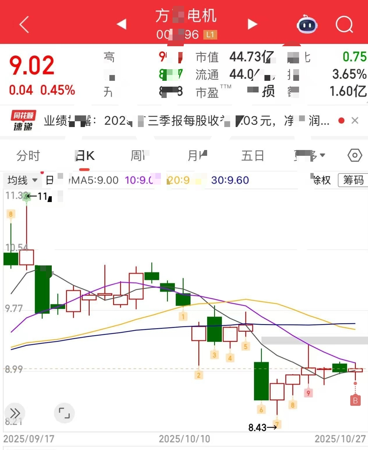 $方正电机(SZ002196)$ 10.27 出悦达,入方正