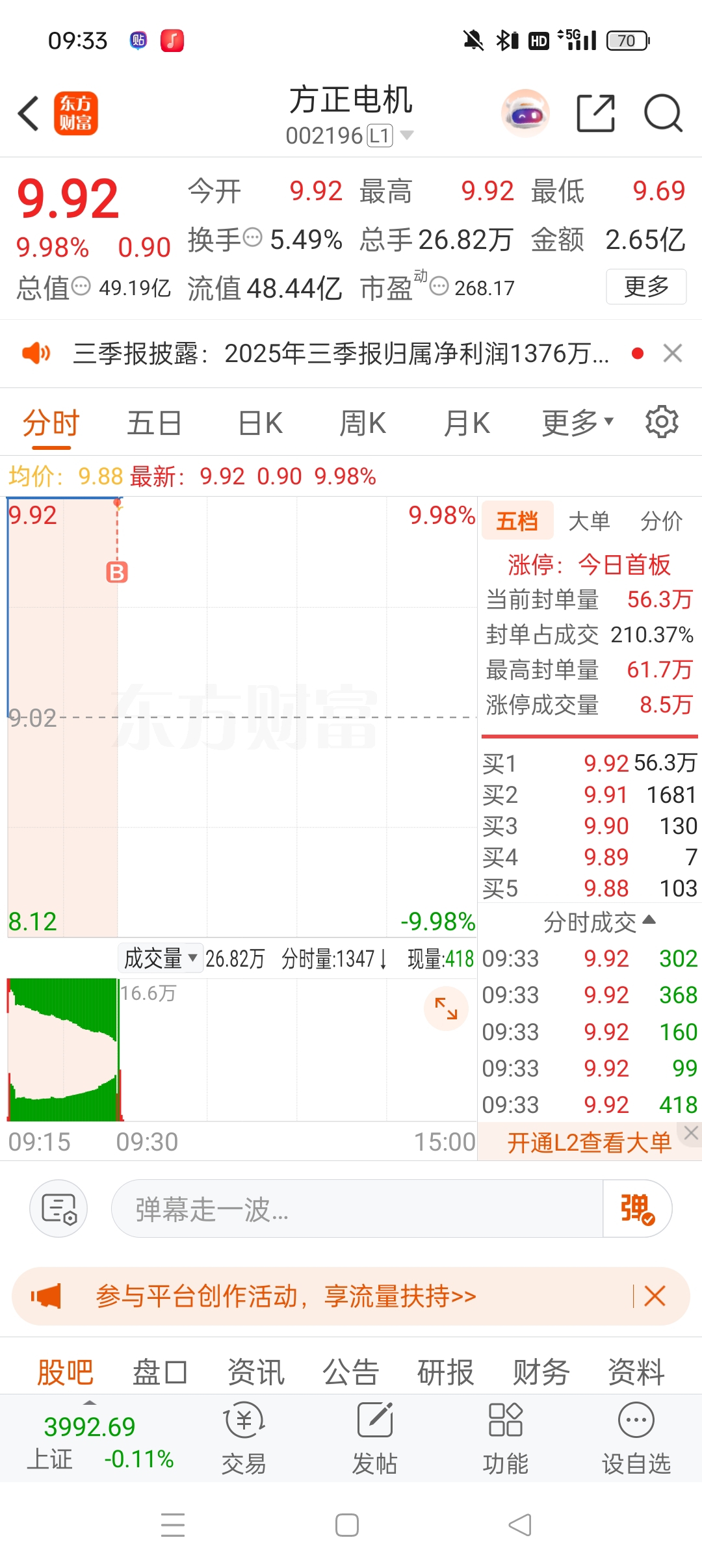 $方正电机(SZ002196)$ 今天的工作已经结束