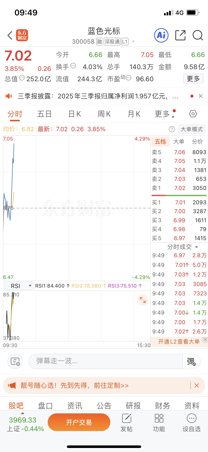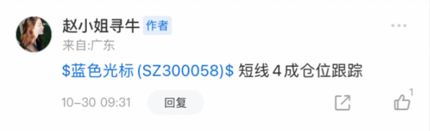 周四早盘提示$蓝色光标(SZ300058)$正在拉升注意把握好,吃肉的不多说给赵小姐支持的点点赞关注评论666,接好运祝你祝我 我们一起六六大顺!…………
