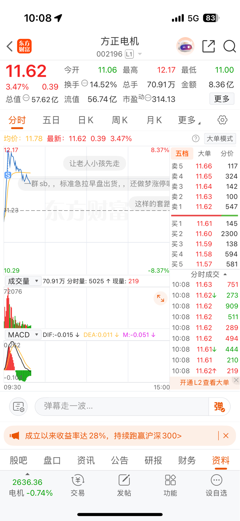 $方正电机(SZ002196)$ 不知道跑的对不对
