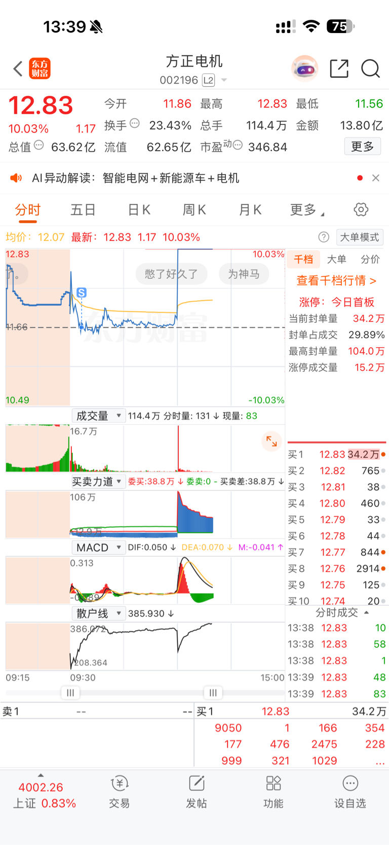 $方正电机(SZ002196)$ 流下没格局的眼泪