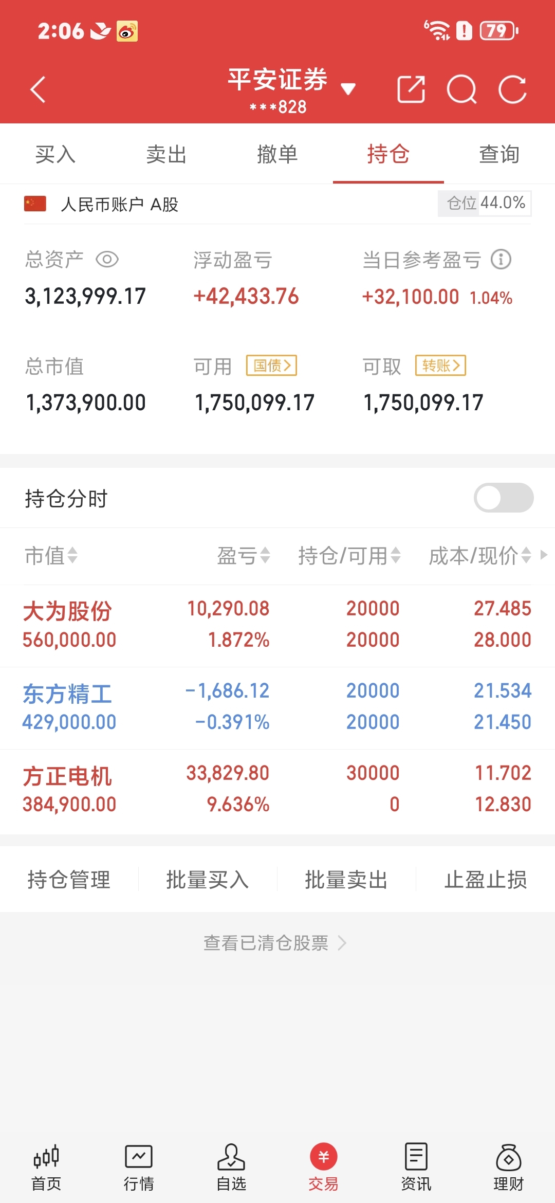 今日持有: $大为股份(SZ002213)$ $东方精工(SZ002611)$