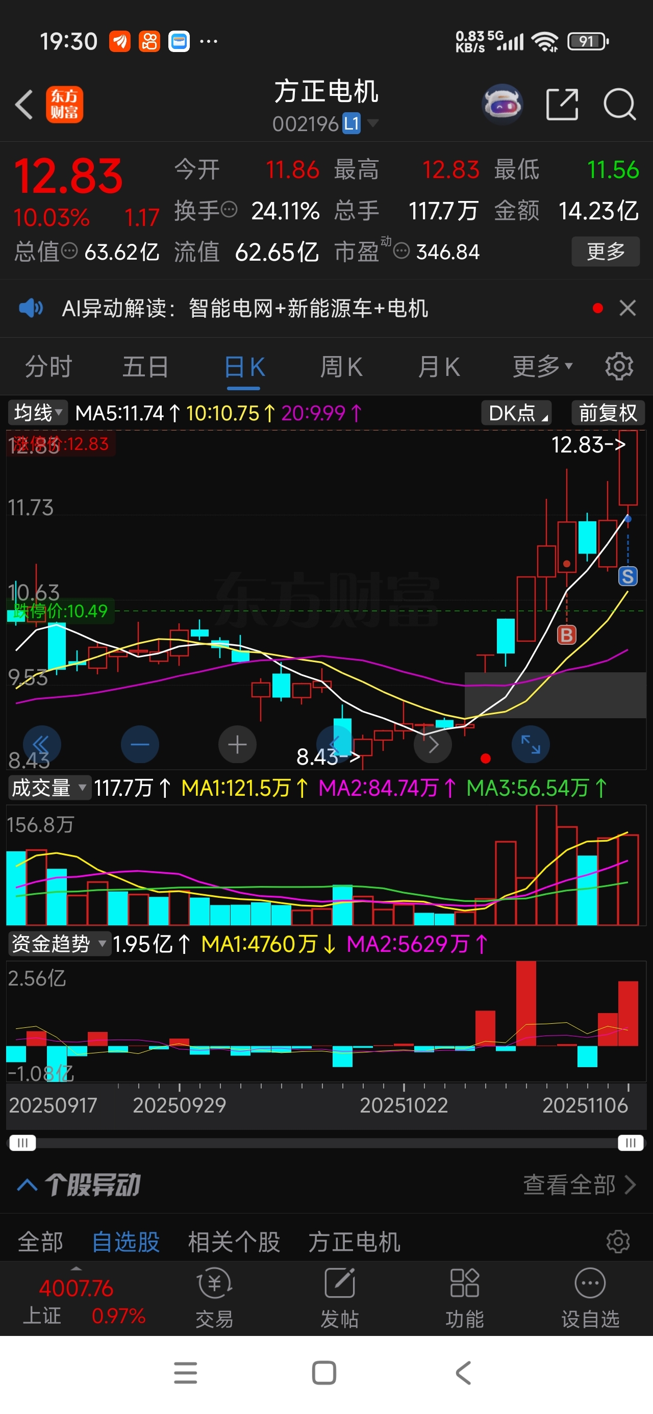 $方正电机(SZ002196)$ 早上冲高回落被骗出去了,这样拉估计要错过好几个涨停板了,接着后面都是一字板吧,不会让人进去了