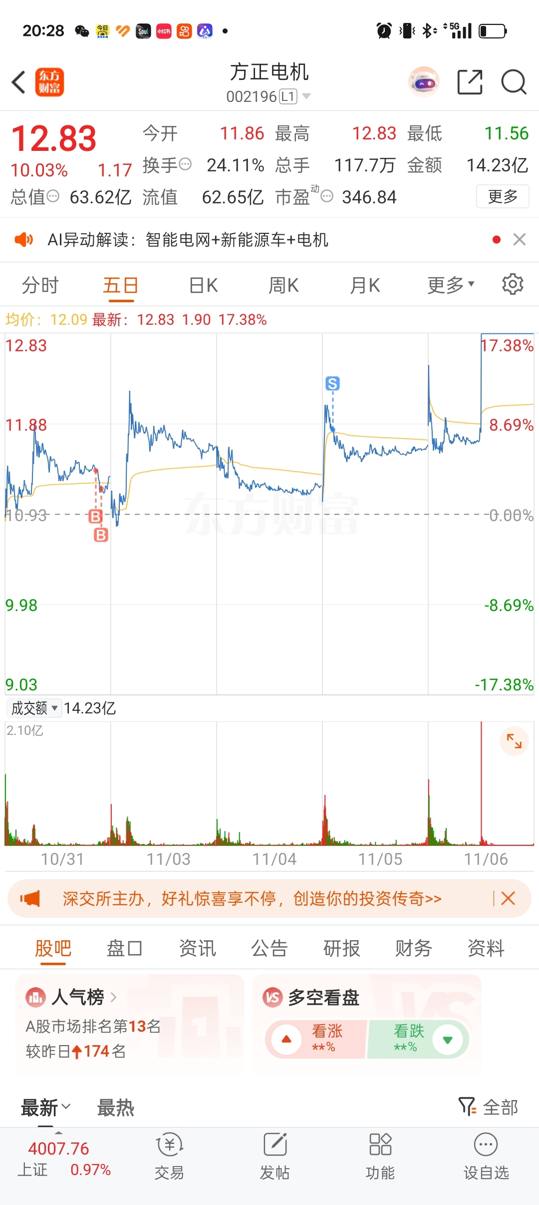 $方正电机(SZ002196)$ 哎,我卖就拉涨停