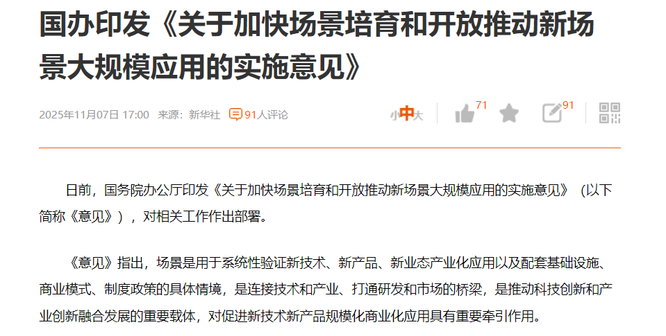 国办:关于加快场景培育和开放推动新场景大规模应用的实施意见直接利好无人机和机器人