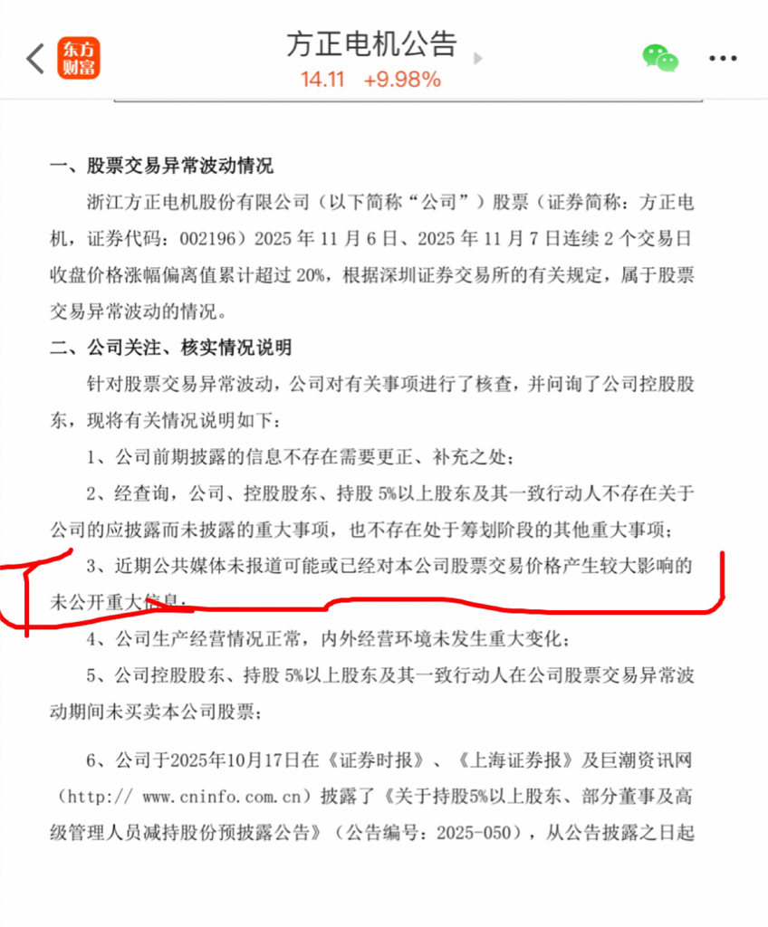 $方正电机(SZ002196)$ 公共媒体未报道可能影响股价的重大信息。是不是可以理解为,确实有重大信息,但因为保密协议不能发布