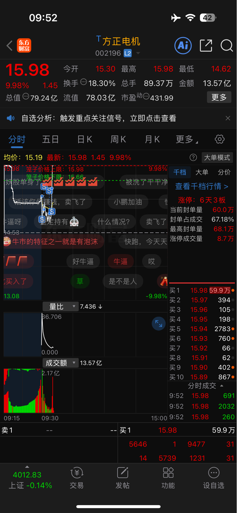 $方正电机(SZ002196)$ 卧槽,哭晕了
