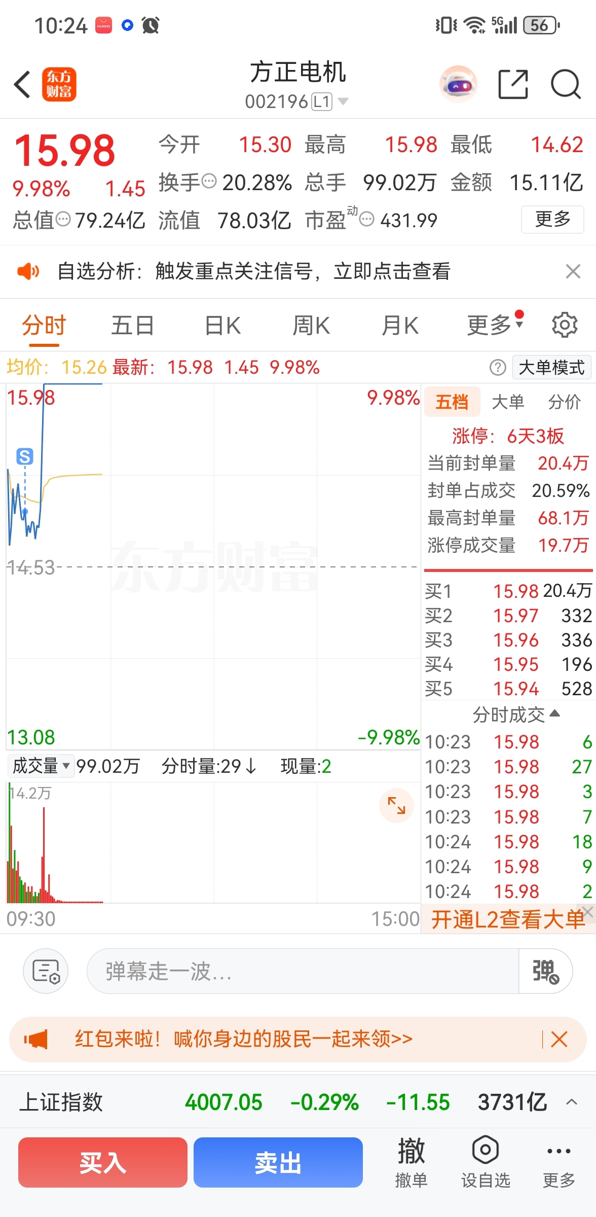 $方正电机(SZ002196)$ 看看我的“瞎”操作