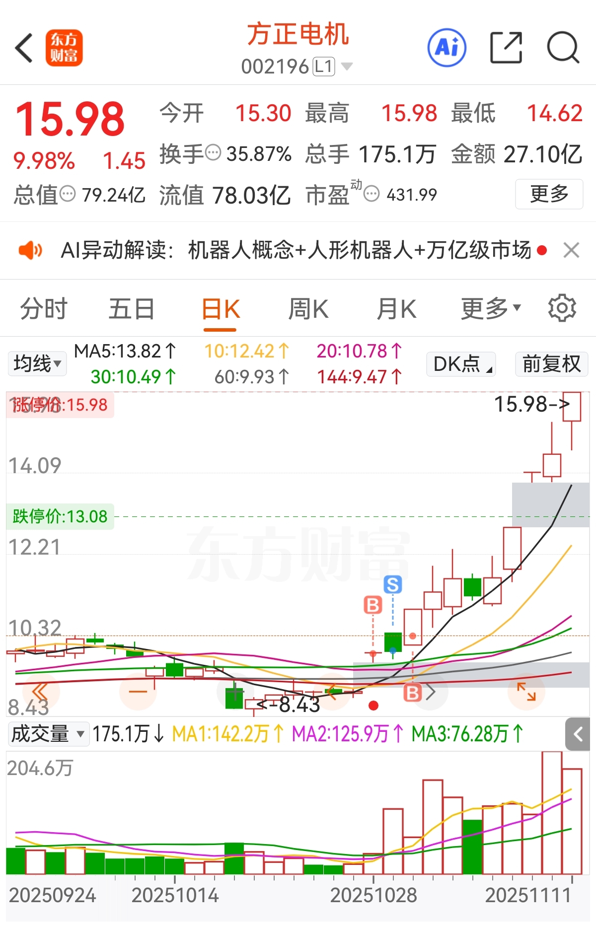 $方正电机(SZ002196)$ 稳的很,走什么走?