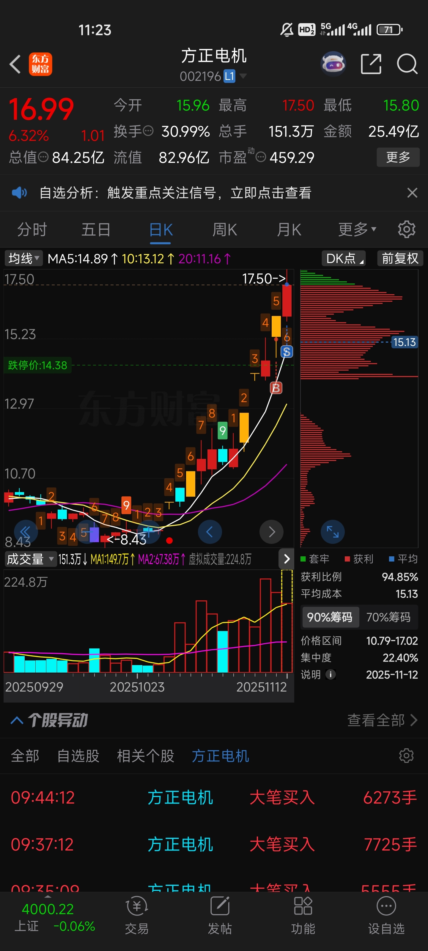 $方正电机(SZ002196)$ 全仓进了,差不多赚了10多个点,留下的兄弟发财,溜了溜了