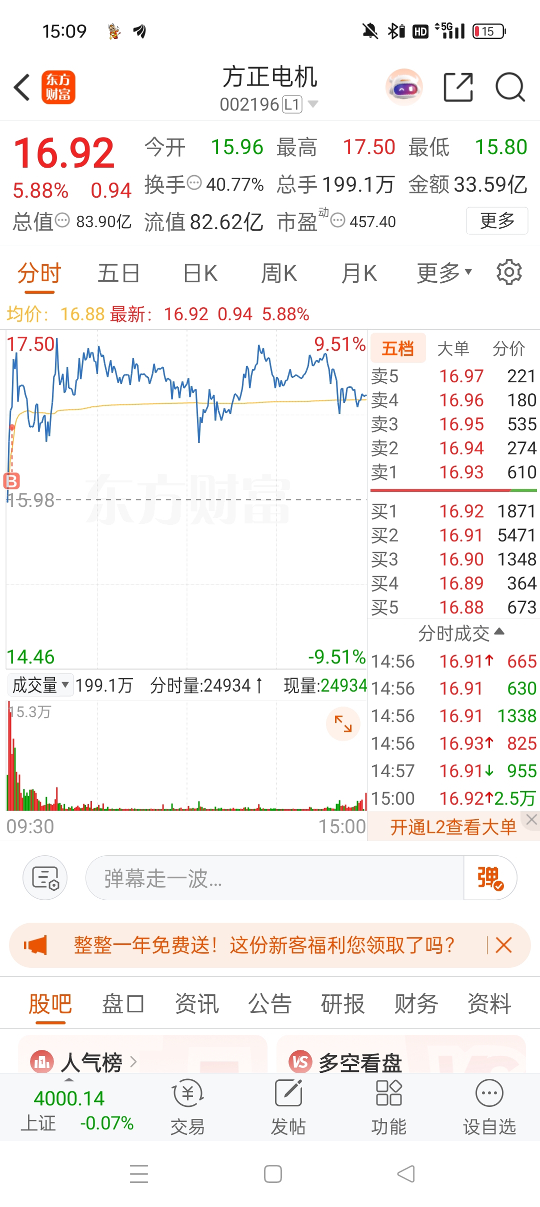 $方正电机(SZ002196)$ 静静等下一个周期,目前杂毛套利一下