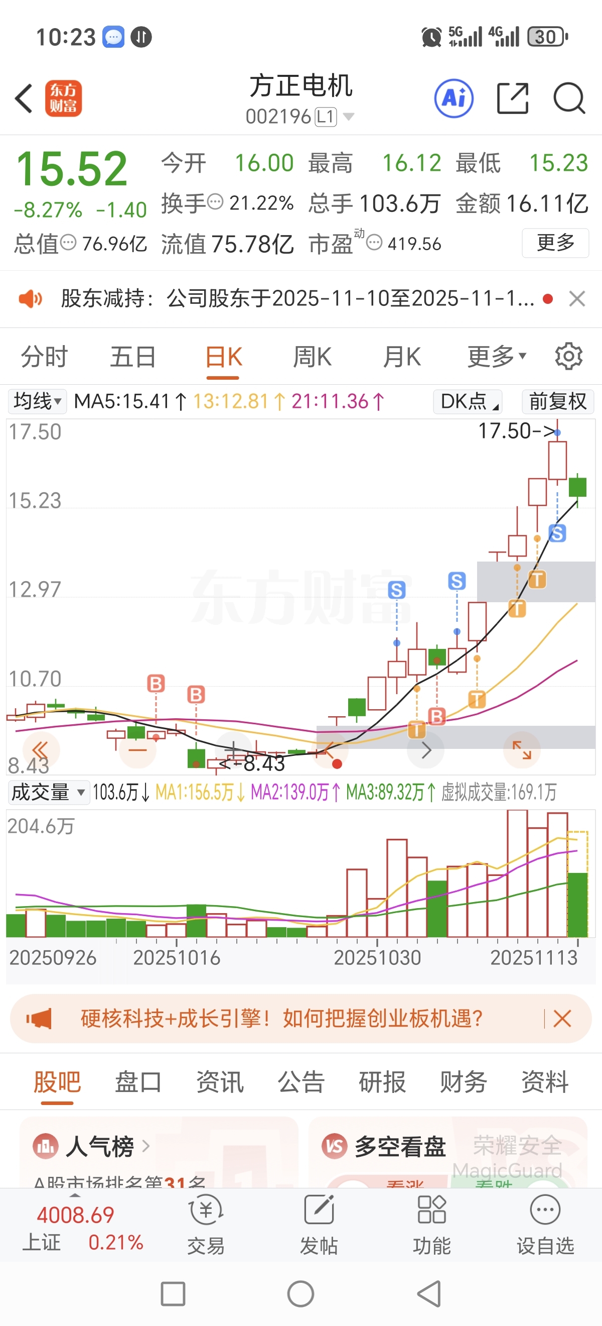 $方正电机(SZ002196)$ 昨天高点清仓分手了,没想到今天直接跌停,也算逃过一笔大回撤,卖了或者被套了,不要急于接飞刀,技术面分析,喵定14.5,机会大概在明天或者后天!做交易别幻想,交易你的计划,计划你的交易!