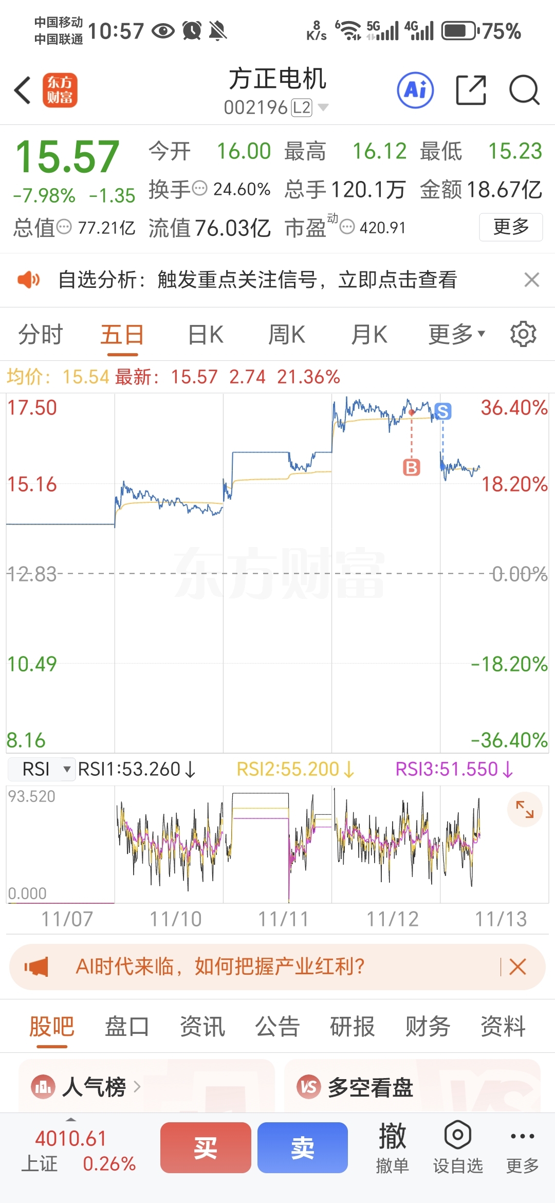 $方正电机(SZ002196)$ 昨天进,今天出,刚好一个跌停,幸好买的不多,果然到我能买的票就得跌
