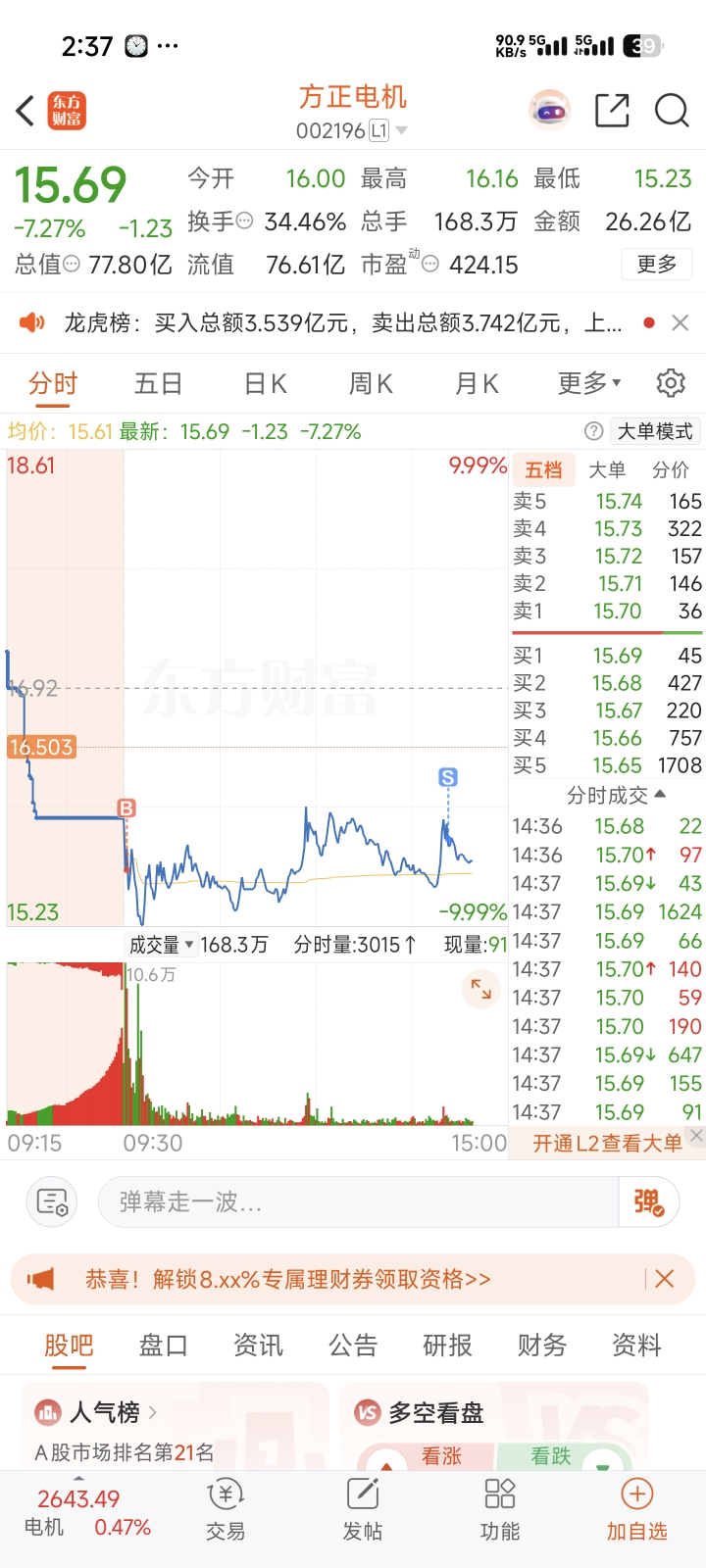 $方正电机(SZ002196)$ 还好抓住机会正T出来了,不然成本更高了