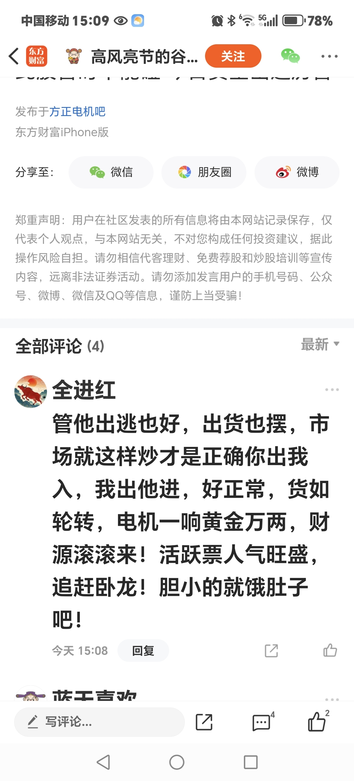 温馨提示: 1.根据《证券法》规定,禁止编造、传播虚假信息或者误导性信息,扰乱证券市场;2.用户在本社区发表的所有资料、言论等仅代表个人观点,与本网站立场无关,不对您构成任何投资建议。用户应基于自己的独立判断,自行决定证券投资并承担相应风险。《东方财富社区管理规定》
