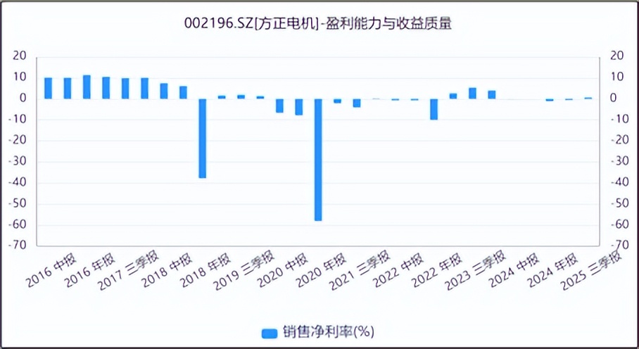 除了新能源业务,方正也在积极布局机器人关节及电动飞行器驱动系统业务。不论是新能源汽车业务,还是机器人业务,都需要持续维持研发投入。财务数据来看,近年方正的研发投入比例持续稳定在7%左右。承压的毛利率(2025年前三季度为13.73%),扣除研发等各项投入,净利率所剩无几。数据来看,这些年方正的销售净利率要么亏损,要么微利。