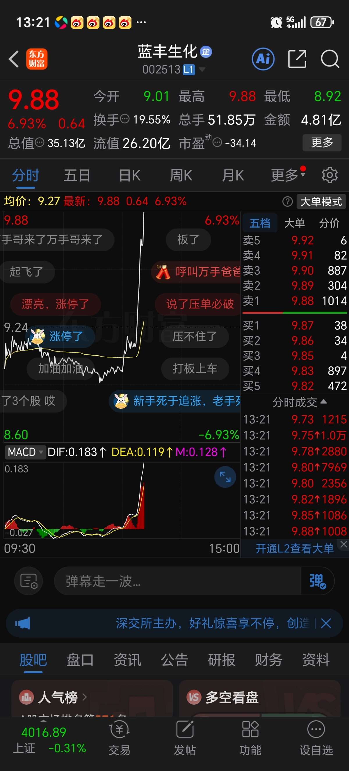 温馨提示: 1.根据《证券法》规定,禁止编造、传播虚假信息或者误导性信息,扰乱证券市场;2.用户在本社区发表的所有资料、言论等仅代表个人观点,与本网站立场无关,不对您构成任何投资建议。用户应基于自己的独立判断,自行决定证券投资并承担相应风险。《东方财富社区管理规定》