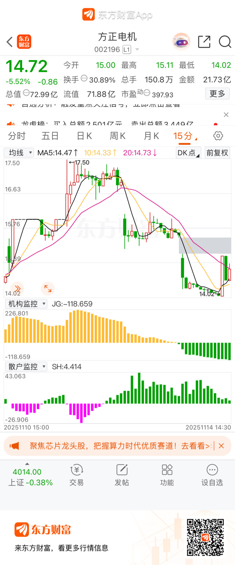 $方正电机(SZ002196)$ 帮看看是不是尾盘拉升