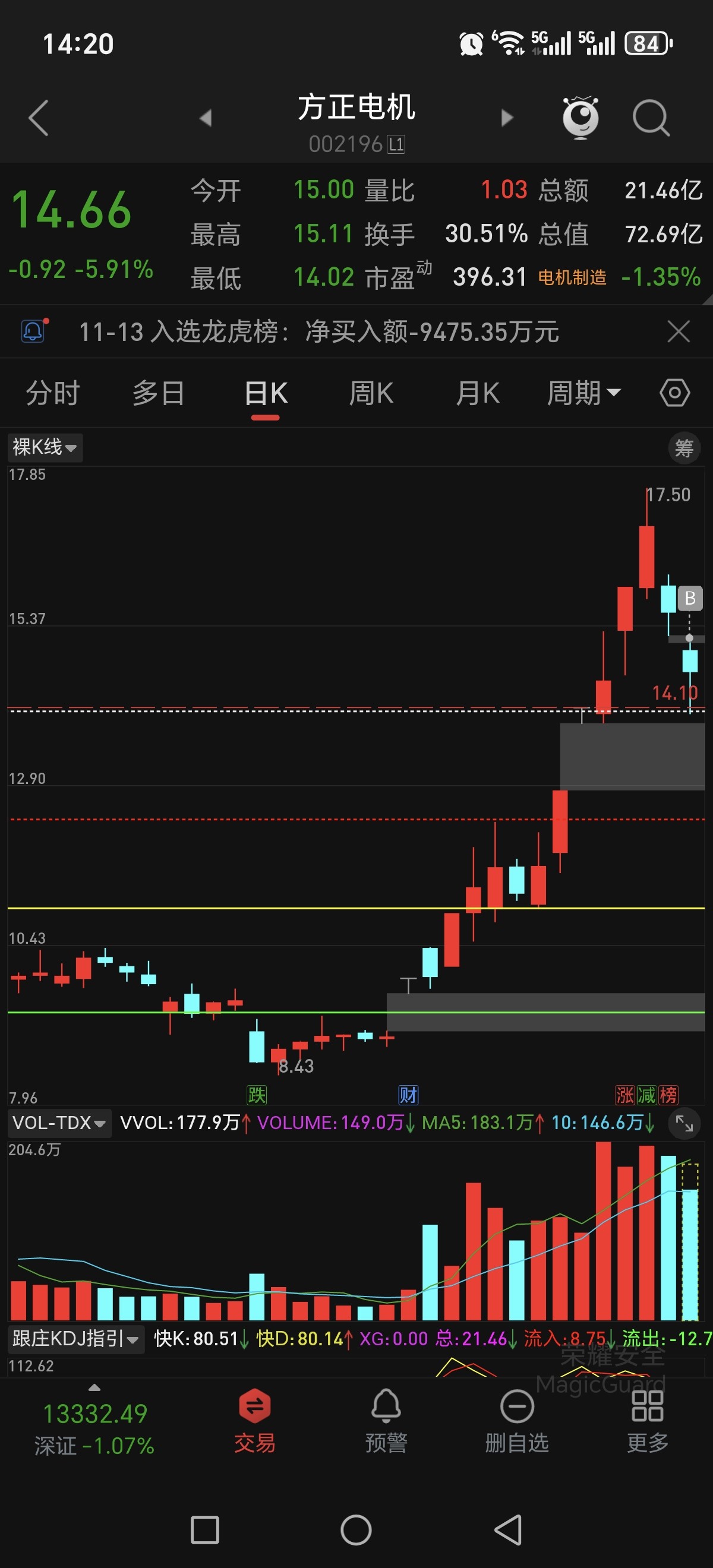 $方正电机(SZ002196)$ $长电科技(SH600584)$ $东方财富(SZ300059)$ 走了,彻底清仓方正电机,一路走来翻倍了,今天上涨有点乏力了,技术面看有回踩需求,若能回踩14.5再择机上车,高低切换布局二线科技抄底长电科技,东方财富以及晨曦航空