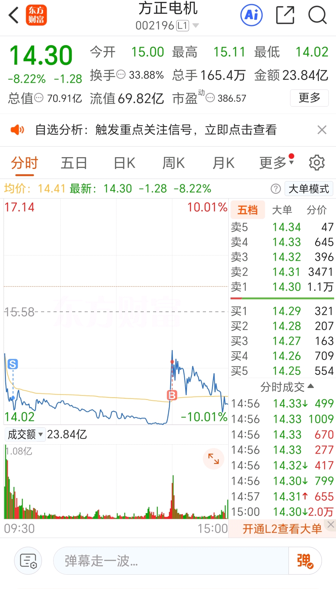 $方正电机(SZ002196)$ 我是用实力证明自己是韭菜的