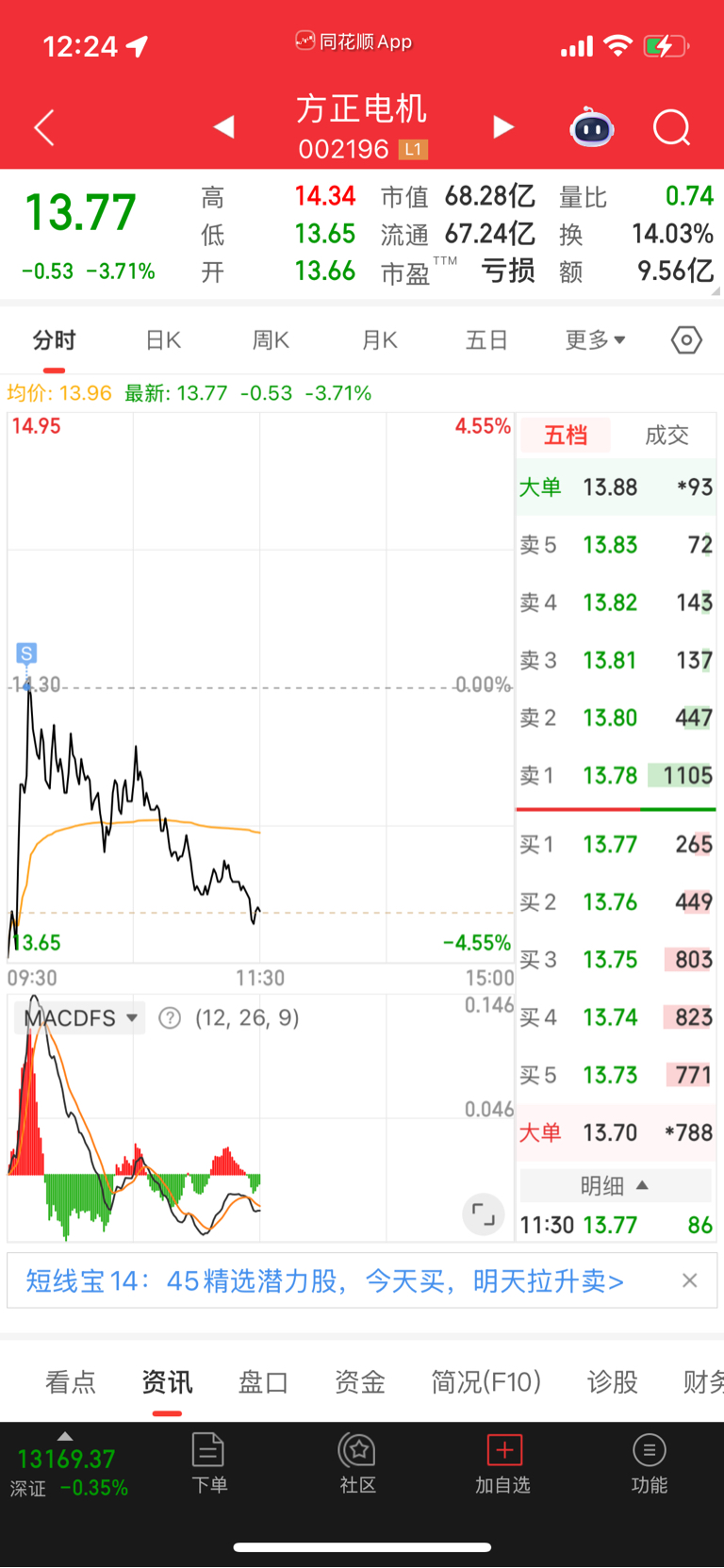 $方正电机(SZ002196)$ 不好意思兄弟们撑不住了,先撤了