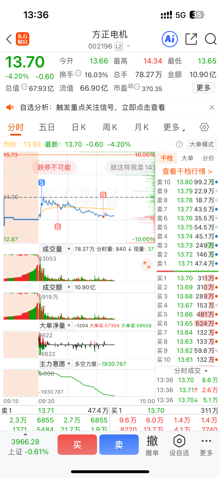 $方正电机(SZ002196)$ 你砸我就捞 坚定好看