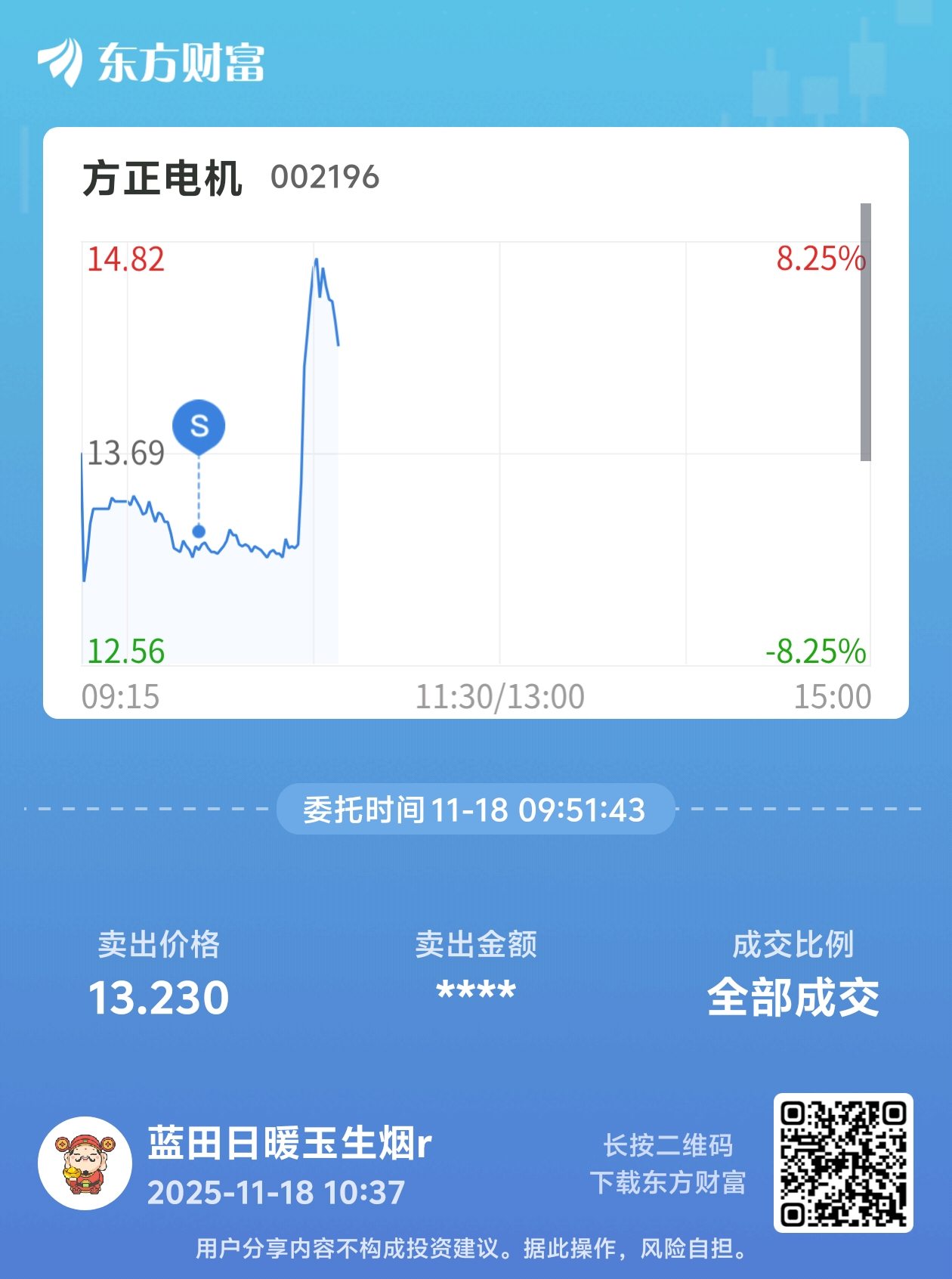 $方正电机(SZ002196)$ 两巴掌送给自己