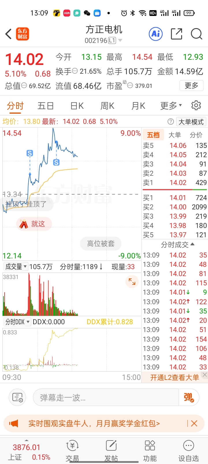 $方正电机(SZ002196)$ 不管做的对不对,今天就这样了