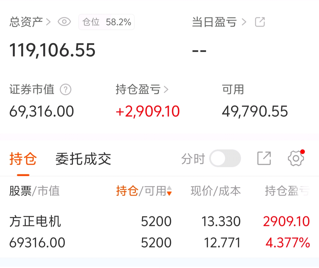 上周五尾盘出了5万,周一低开又进,降低成本。一定要低开给机会呀小敏敏