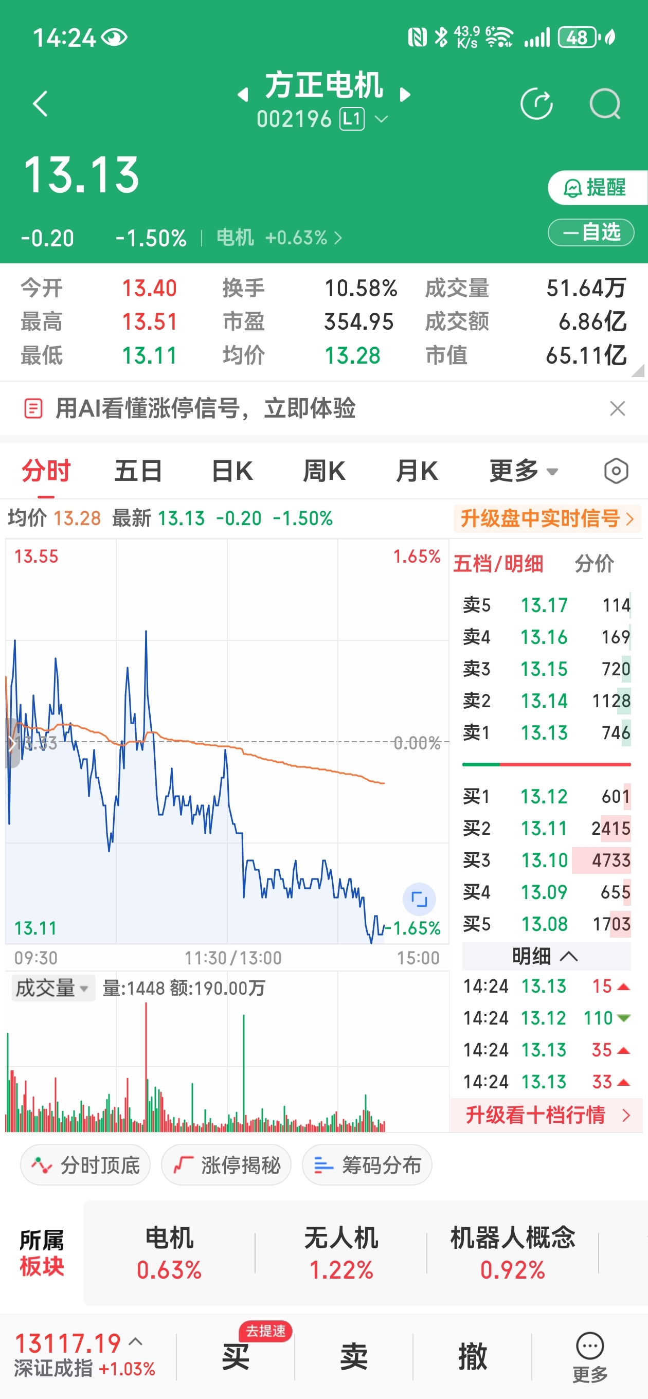 $方正电机(SZ002196)$ 意思是:要散,木散