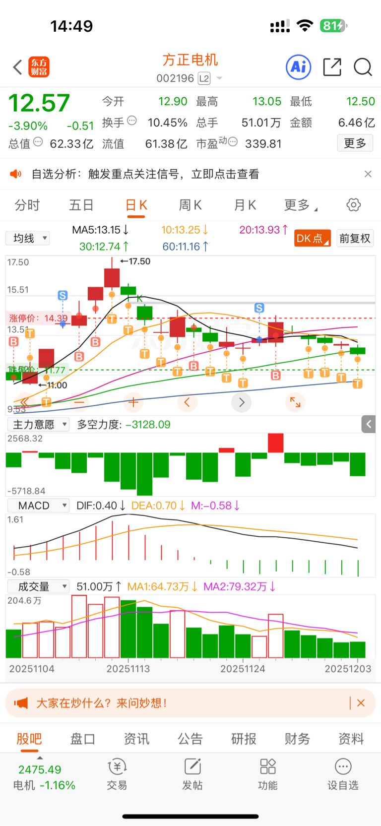 $方正电机(SZ002196)$ 老太太下楼梯,尾盘减半仓,随便你跌了