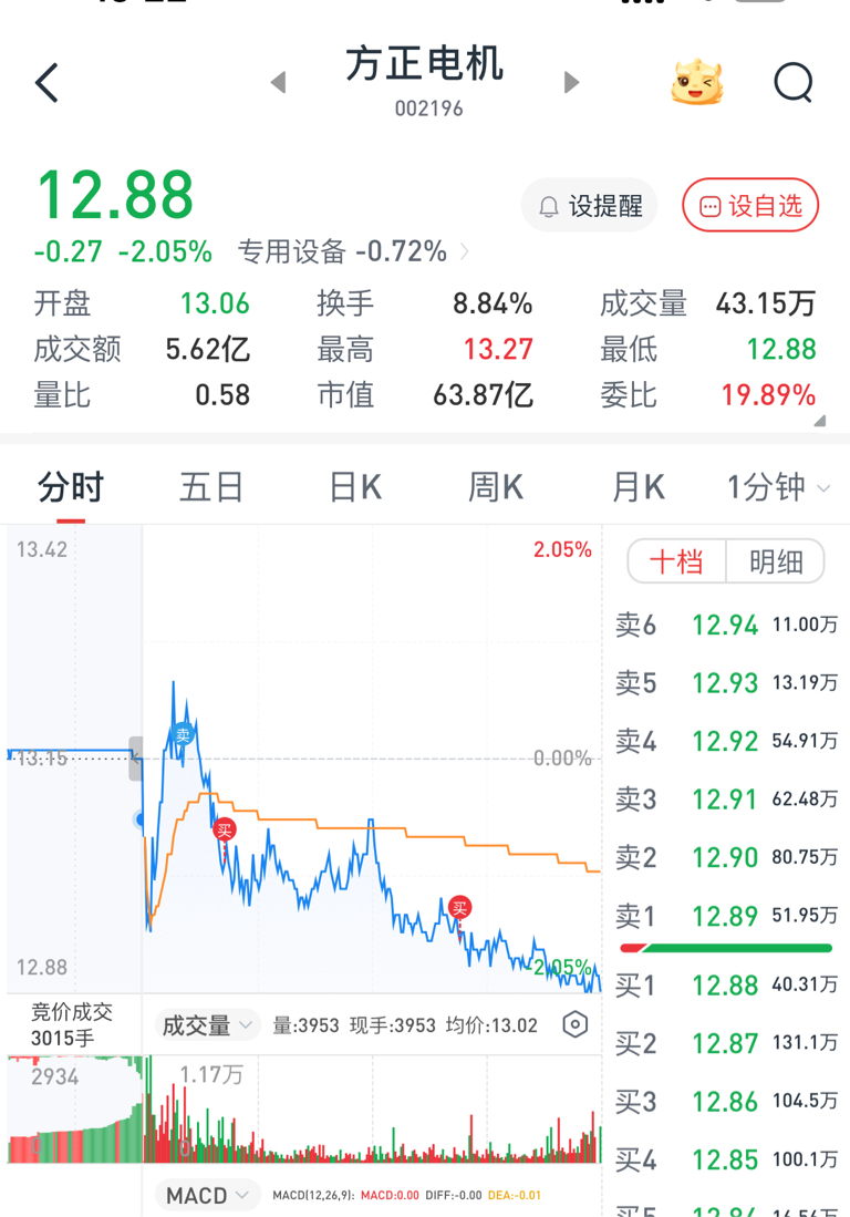$方正电机(SZ002196)$ 换手10以下了,马上变盘,三天内看结果,结合板块最近异动越来越明显,大概率向上,别轻易放弃,有能力的做做T,今天T的不是很理想。