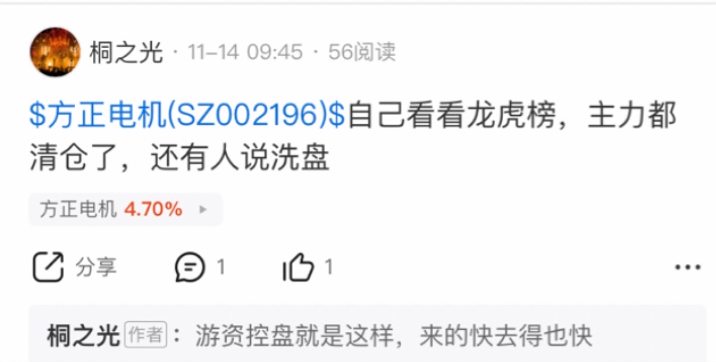 我深入分析完股东意图、各方博弈、资金动向后,14日在股吧迅速提示风险,当时甚至现在还被多人误解。