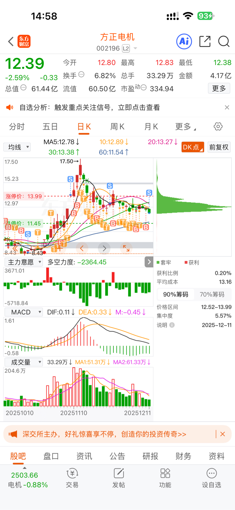 $方正电机(SZ002196)$ 谁还能赚钱,我只赚一点点了