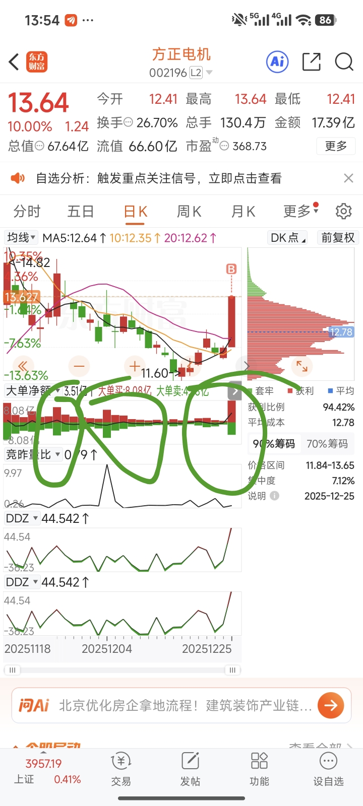 $方正电机(SZ002196)$ 一点溢价都没有,直接跌。