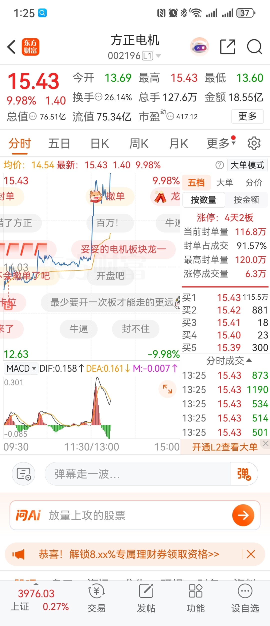 $方正电机(SZ002196)$ 卖飞了力星买了你