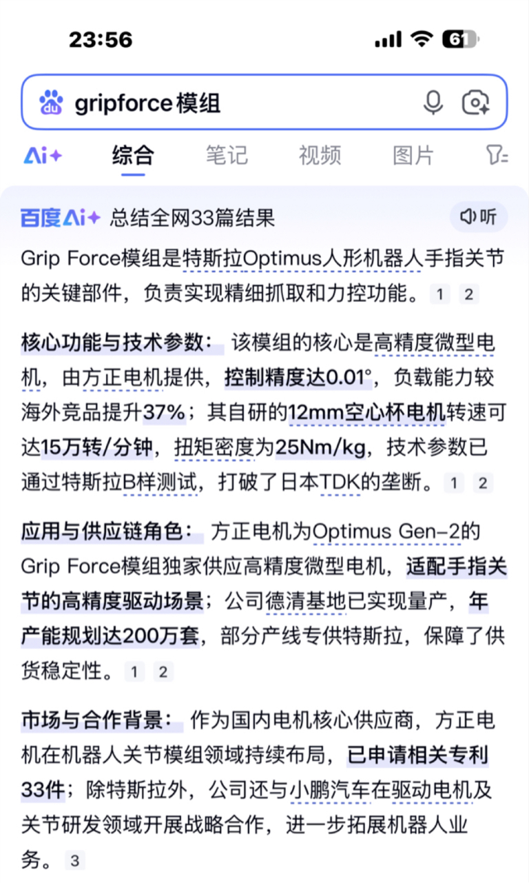 特斯拉人形机器人gripforce模组高精度电机完全由方正电机提供,外加小鹏小米