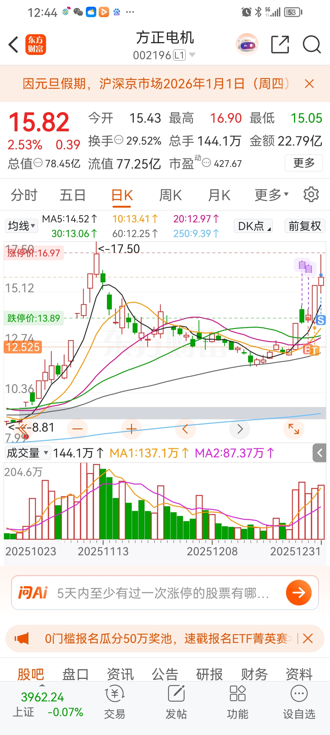 $方正电机(SZ002196)$ 感谢主力我走了你可以拉了