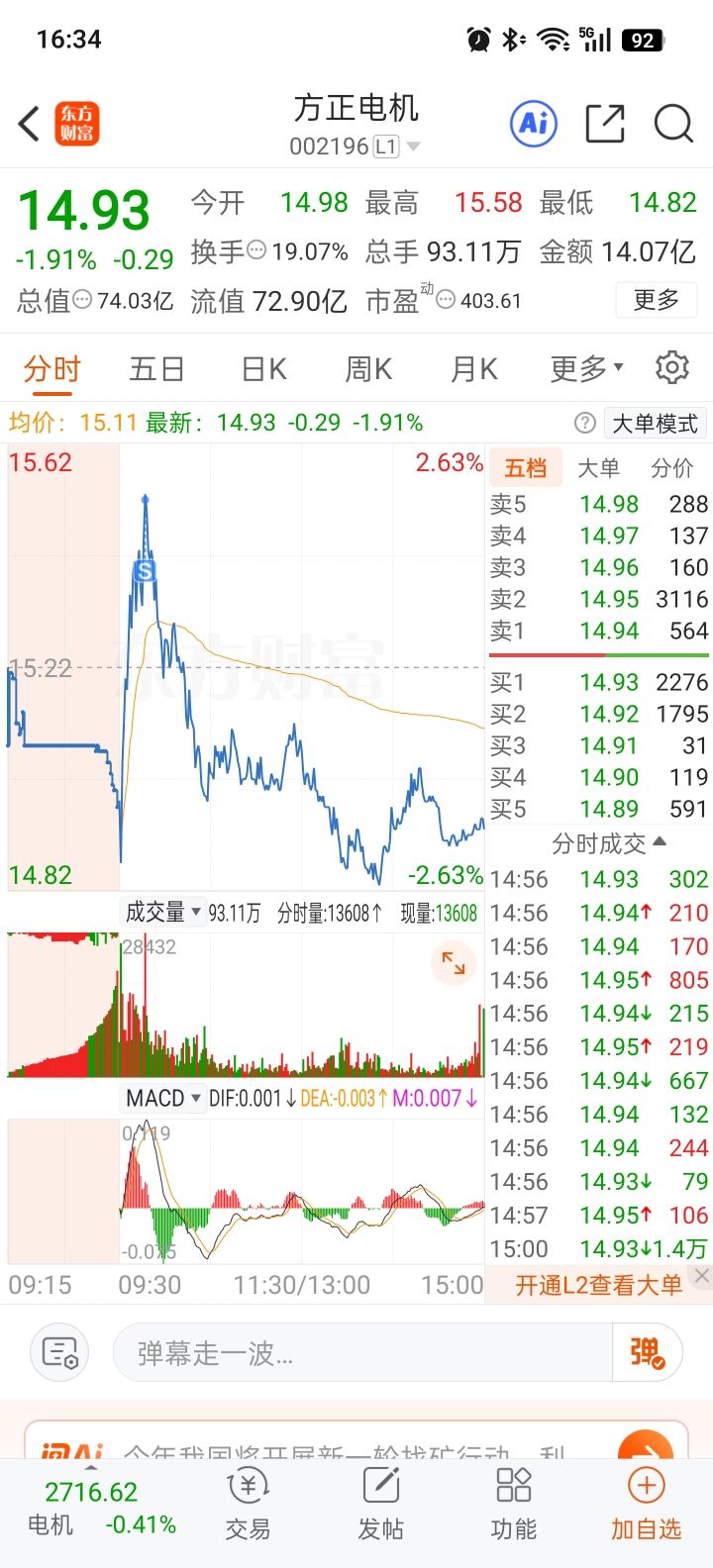 $方正电机(SZ002196)$ 钱没赚到,逃命的本事倒是越来越熟练了,也不知道拉了个啥玩意。要是和上面的口号对不上号,第二天就一碗大面。