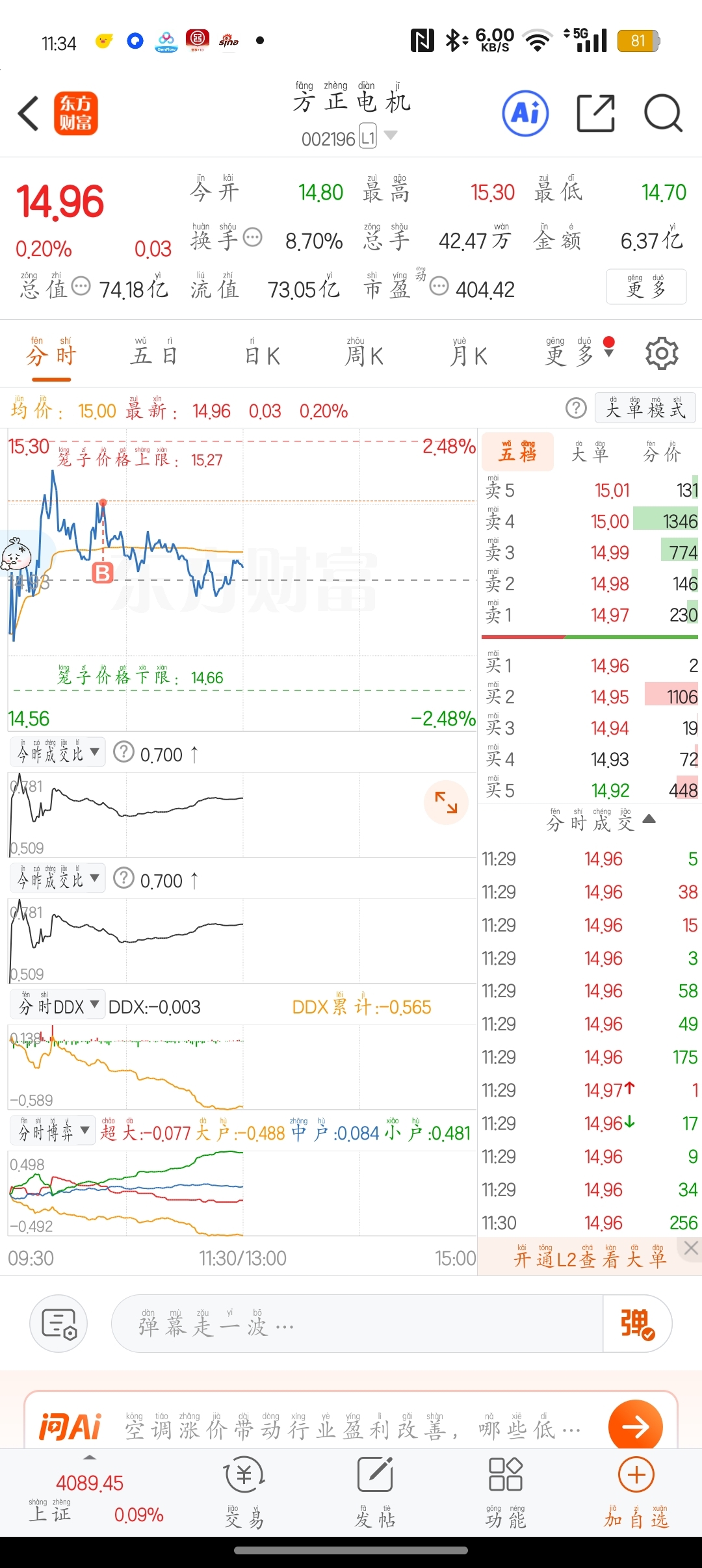 $方正电机(SZ002196)$ 了,挂山顶了