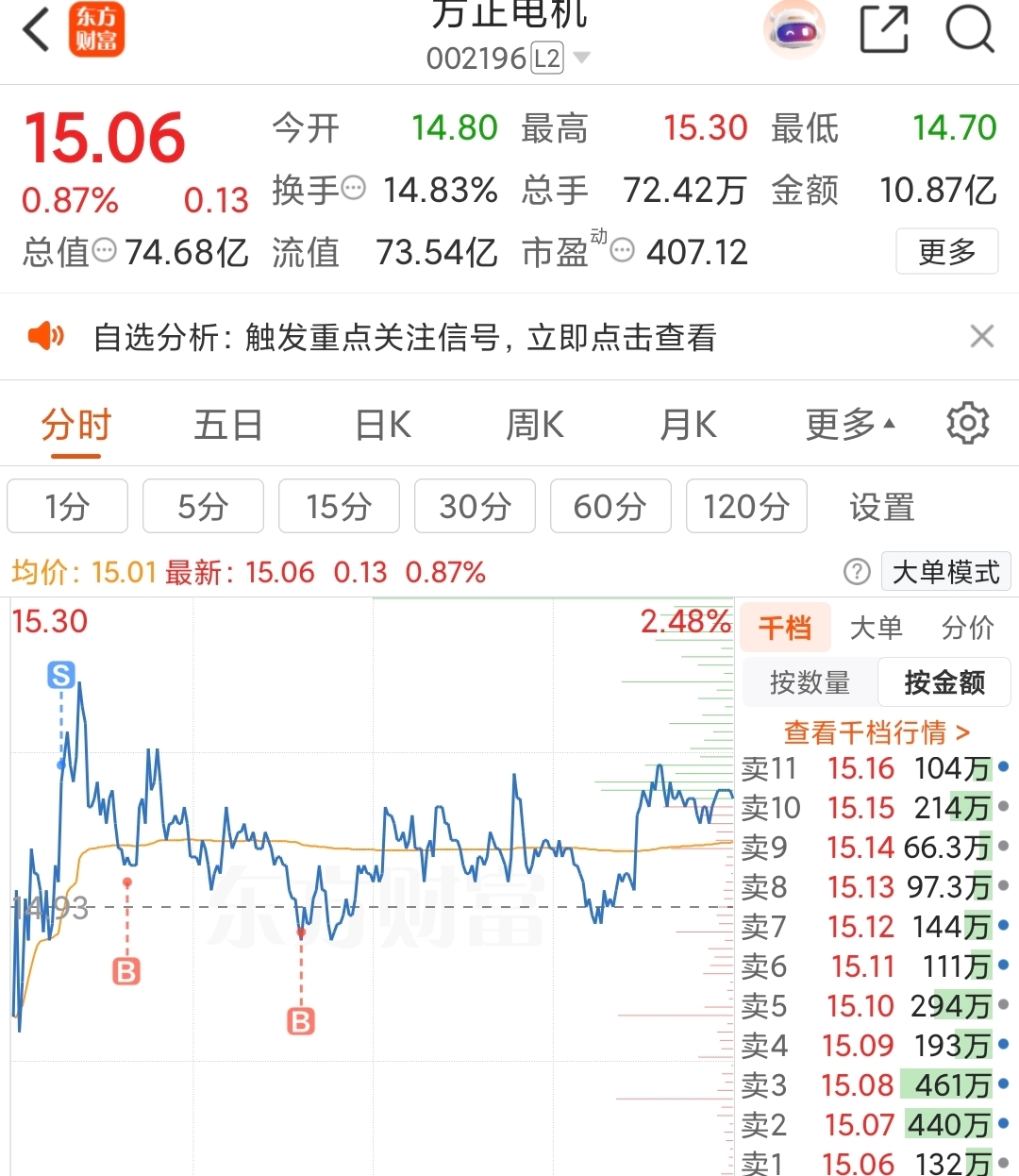 $方正电机(SZ002196)$ 每天都要来这么一次SB战法