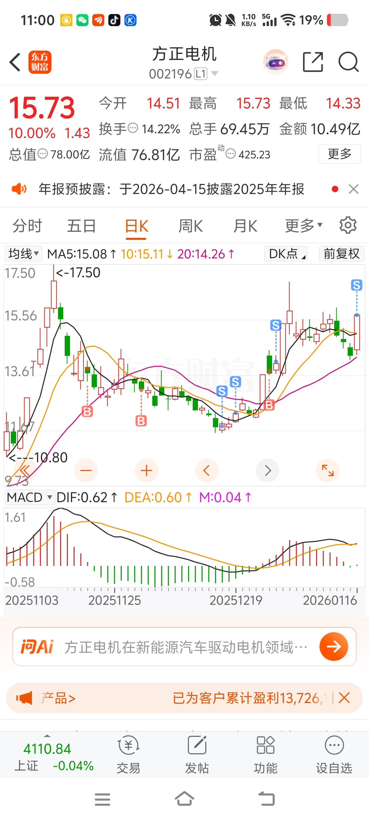 $方正电机(SZ002196)$ 走了走了,,老庄的钱不好挣,,还倒贴了,,,留下的发财
