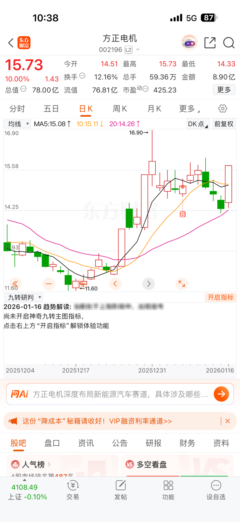 $方正电机(SZ002196)$ 震荡了一个星期还好没下车。不到 20 我不走!立贴为证!