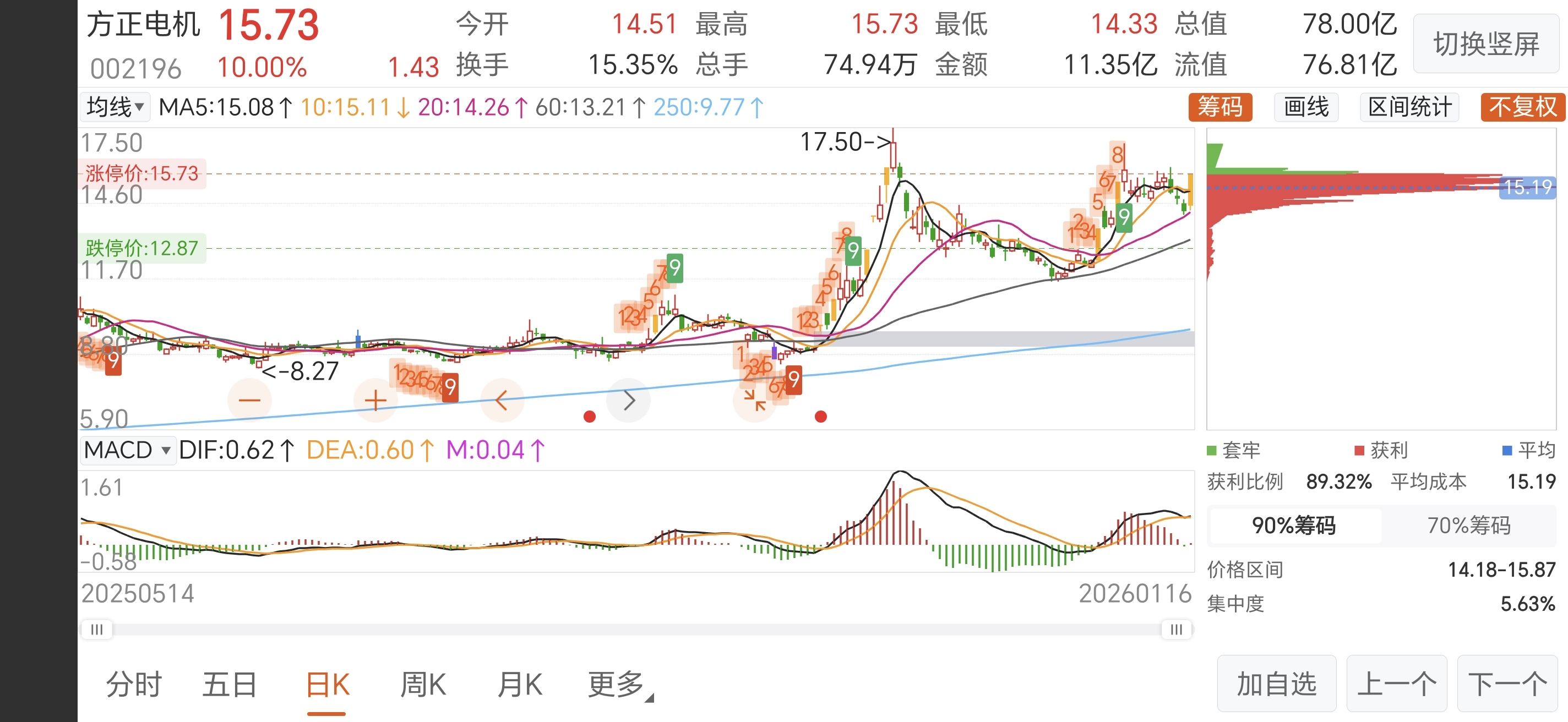 筹码峰高度集中,下周应该能破箱体震荡前高16.9。如果破了16.9,再高看一眼破