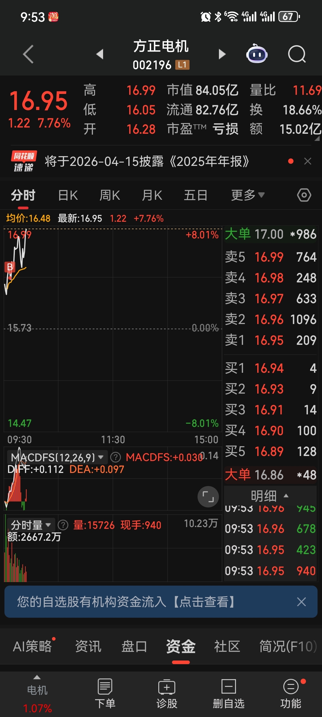 $方正电机(SZ002196)$ 看好你