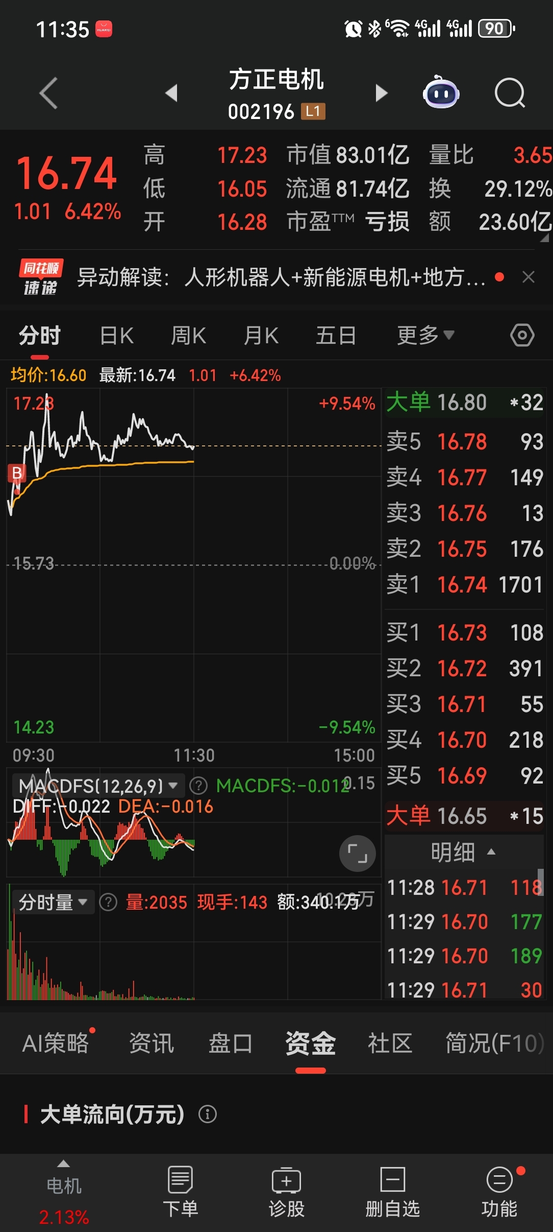 $方正电机(SZ002196)$ 你在怕什么,你大哥五洲下午开盘是秒板,你也更上啊!你也是龙头哦!