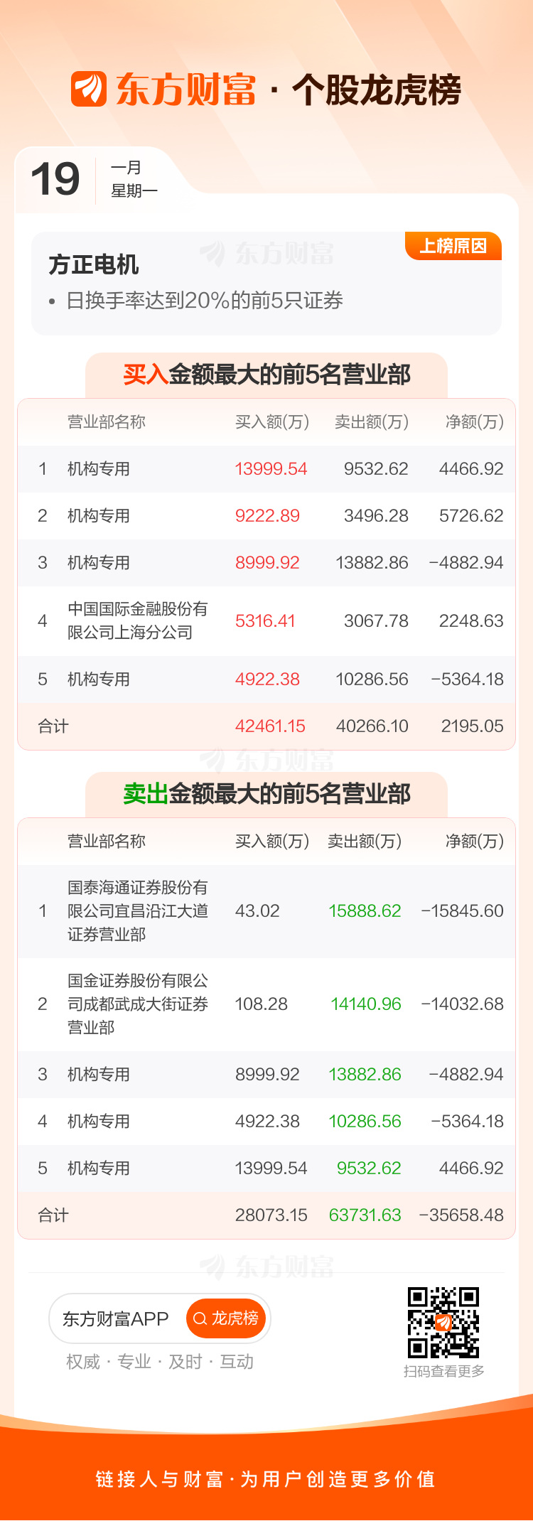 方正电机(002196)龙虎榜数据(01-19)