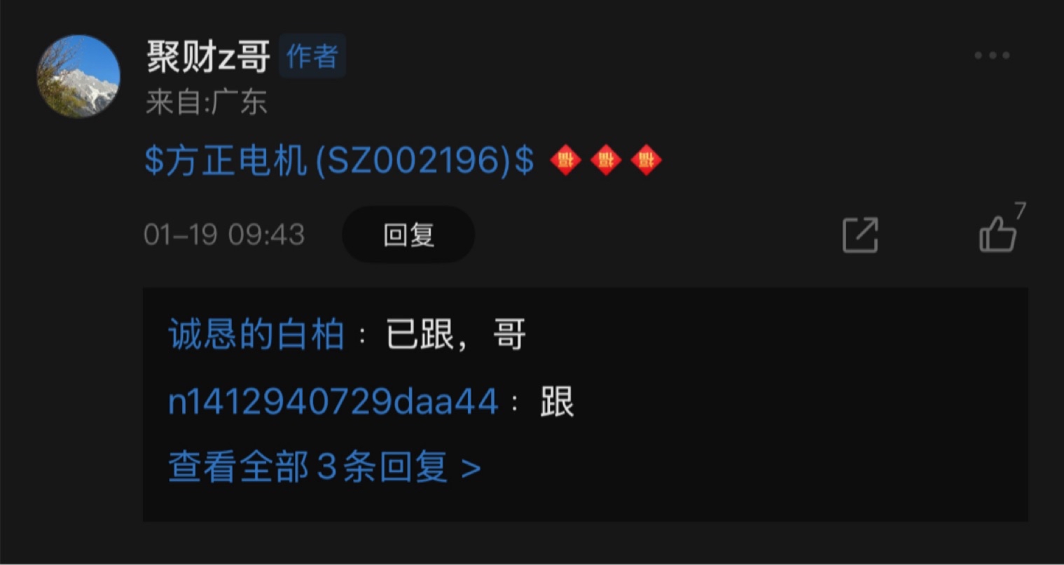 温馨提示: 1.根据《证券法》规定,禁止编造、传播虚假信息或者误导性信息,扰乱证券市场;2.用户在本社区发表的所有资料、言论等仅代表个人观点,与本网站立场无关,不对您构成任何投资建议。用户应基于自己的独立判断,自行决定证券投资并承担相应风险。《东方财富社区管理规定》