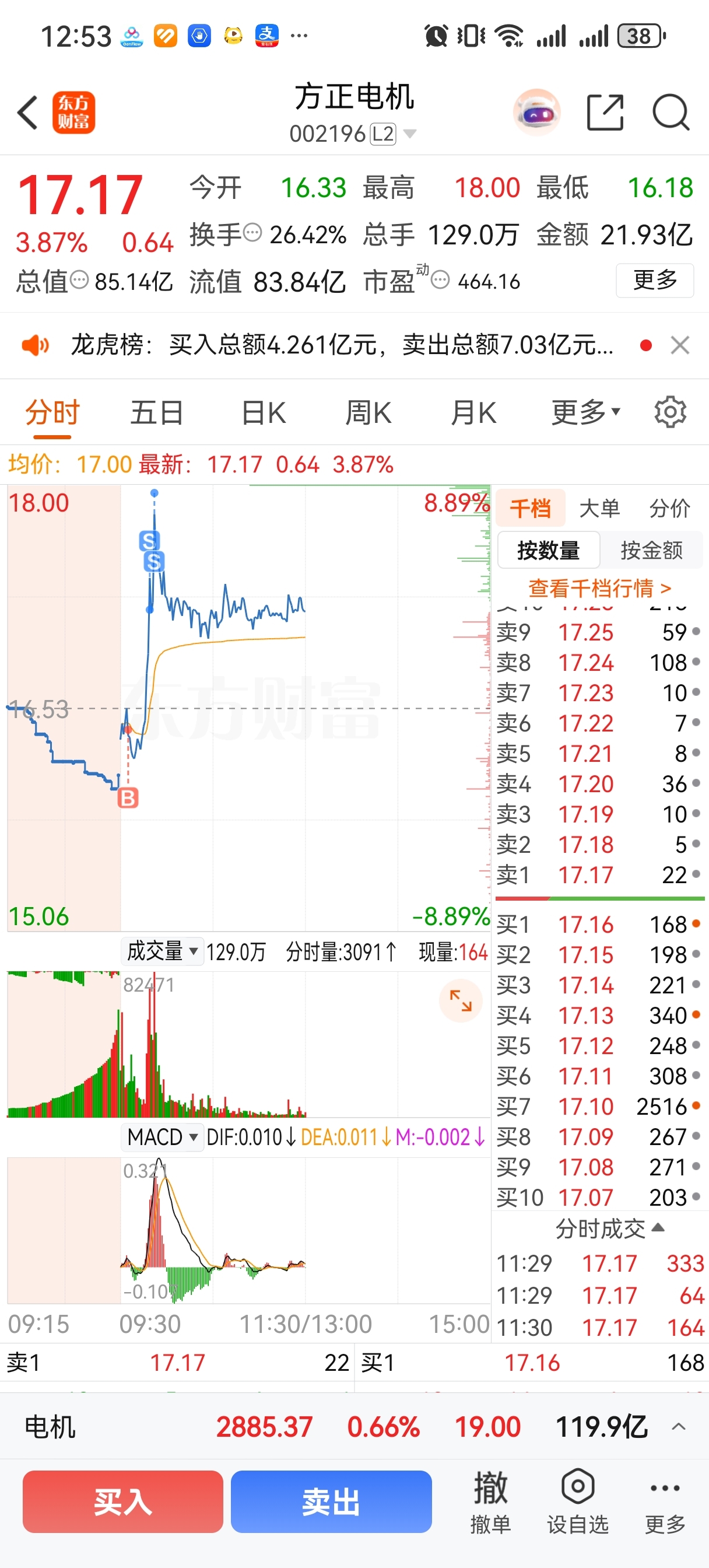 $方正电机(SZ002196)$ 先告一段落咯,感谢主力
