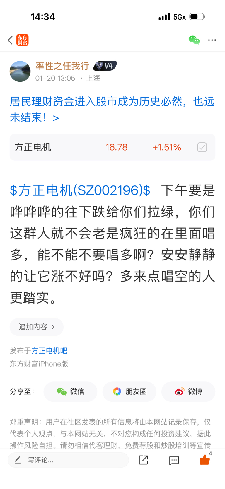 $方正电机(SZ002196)$ 给你们这群无脑唱多的多看看,记住以后不要幻想唱多。